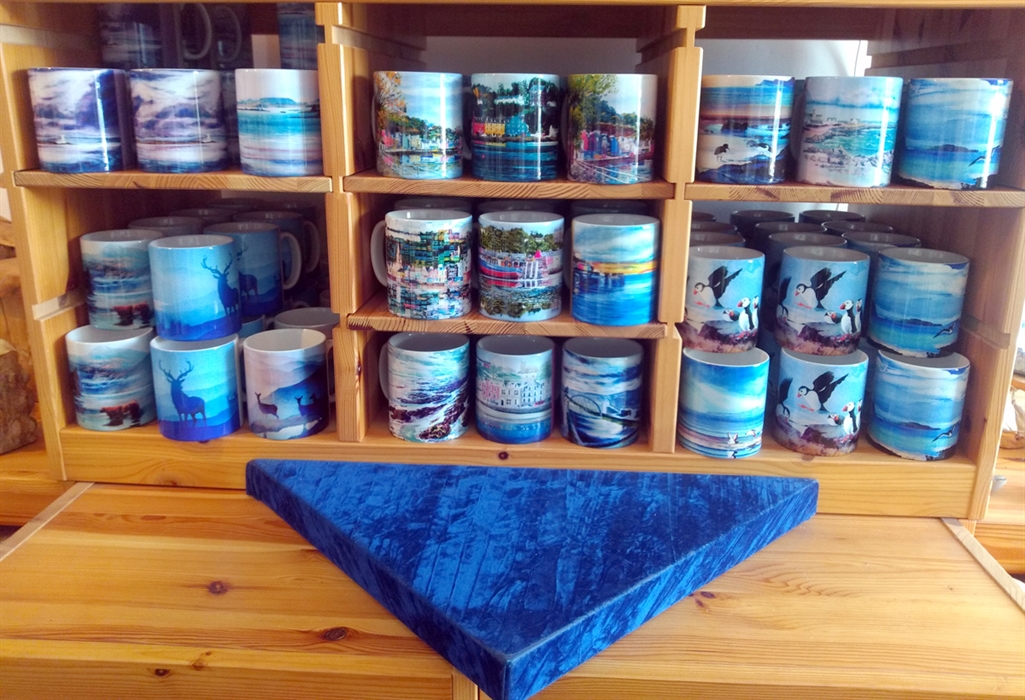 Isle of Mull and Scotland paintings, limited edition giclee art prints by Ronnie Leckie & Aska Marzec. A collection of mugs featuring our paintings. Bismuth bowls and resin artwork. A collection of Earth gems