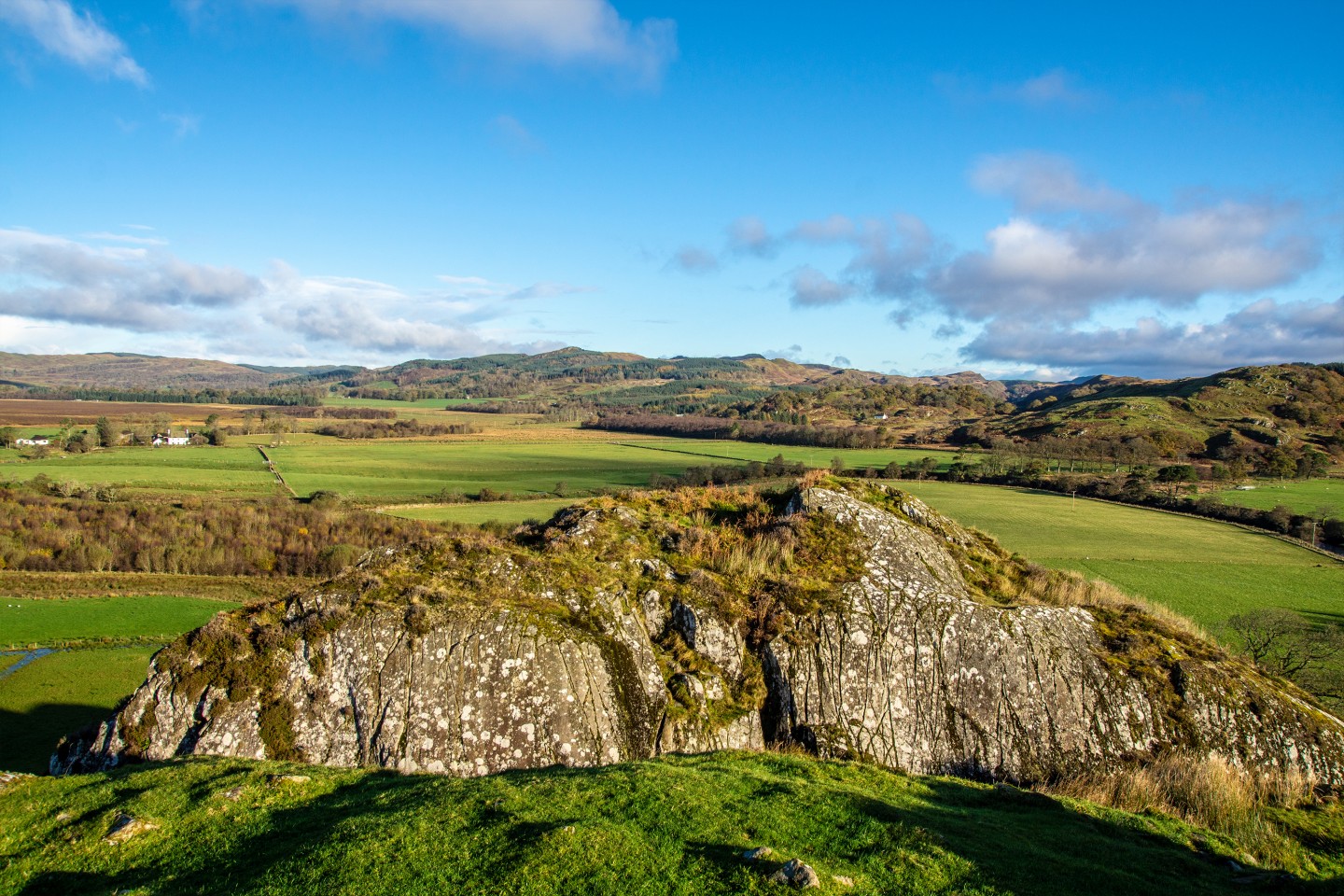 We’ll make the short drive to the rock carvings at Achnabreck. This massive rock outcrop is one of the finest examples of prehistoric rock art in Scotland. The carvings are extensive with spirals and massive multiple ring marks, some stretching a meter across.
