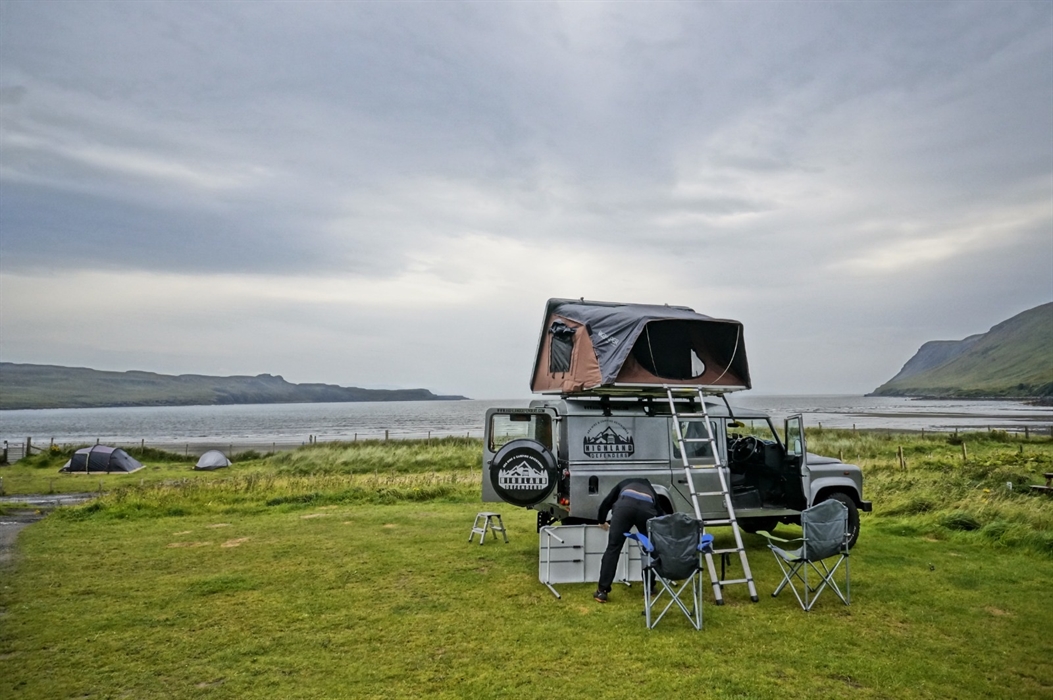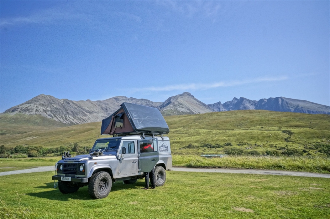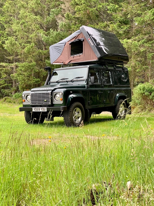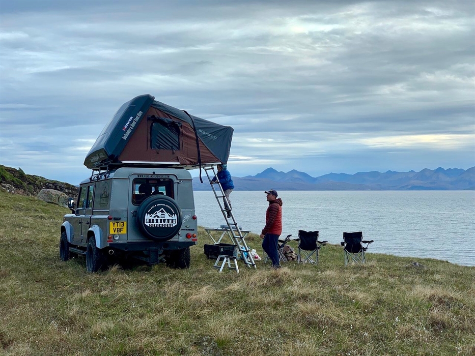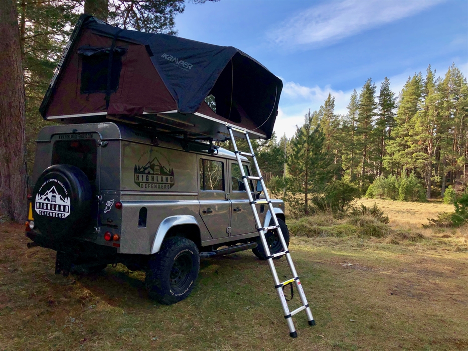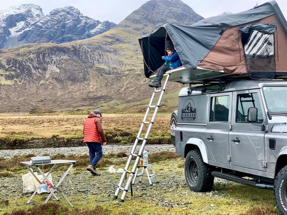 We hire fully equipped Land Rover Defenders and roof tents, ready for your Scottish Highland Adventure.