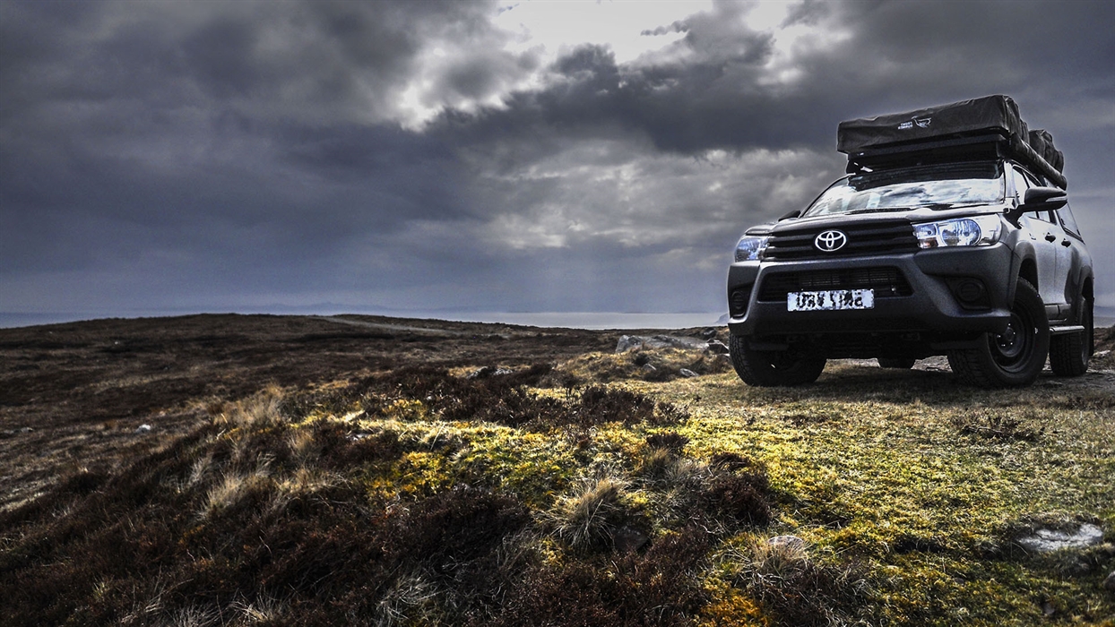 Welcome to Scotland Overland. We hire camping-equipped Land Rover Defenders and Toyota Hilux for self-drive tours of Scotland. Our vehicles include roof tents, fridges and all of the equipment needed for up to 4 people explore Scotland's beautiful scenery.