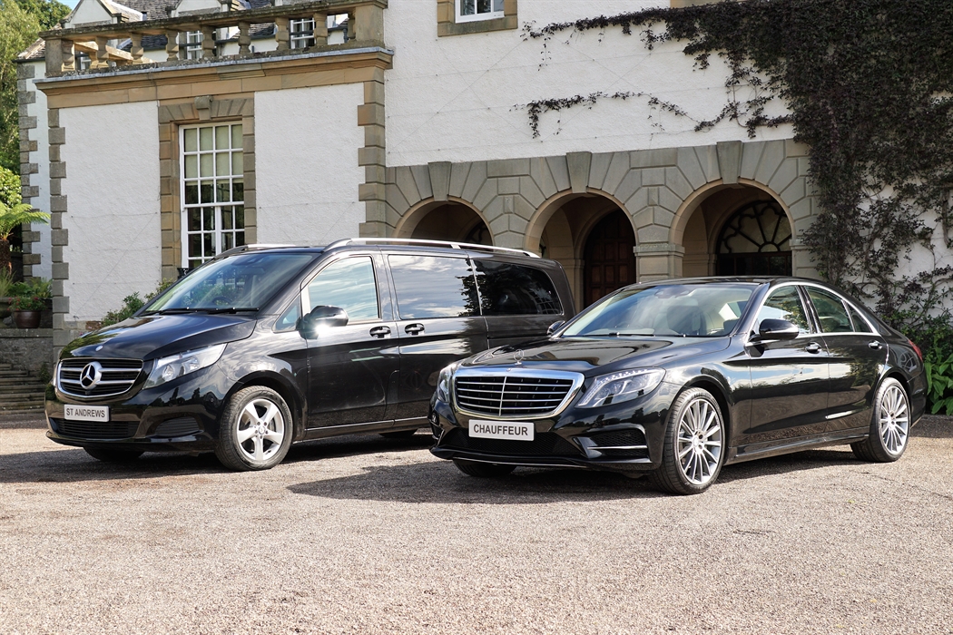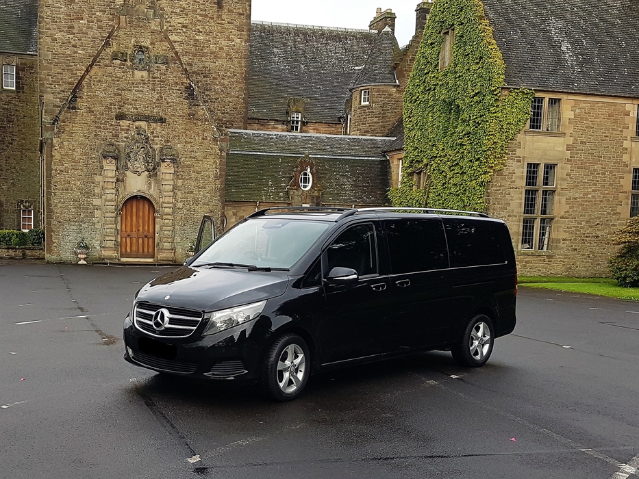 Private Golf Transport is available for visitors to Scotland's Golf Courses and can be made available for the duration of your stay in Scotland. This arrangement suits golfers who wish to plan their own games and make their own choice of courses. Our 8 seater luxury Mercedes- Benz V Class can easily take 4 golfers with clubs and luggage in comfort. Your personal chauffeur will meet you at the airport, tranfer you to your accomodation and be ready and waiting to drive you to your first tee-time, no need to worry over travelling times, traffic or directions.Your driver can assist with places to visit and where to eat and evening transport can be included too. When staying in St Andrews it is possible to play Gleneagles, Carnoustie, The Old Course, Kingsbarns and Muirfield although Royal Dornoch & Castle Stewart in the Highlands would require an overnight stay with perhaps a departure from Inverness Airport.