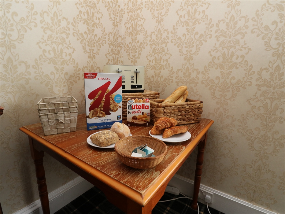 Room 1- Seaview, ground floor, single bedroom (3/4 size bed) with TV and en-suite shower, basin, heated towel rail and WC
