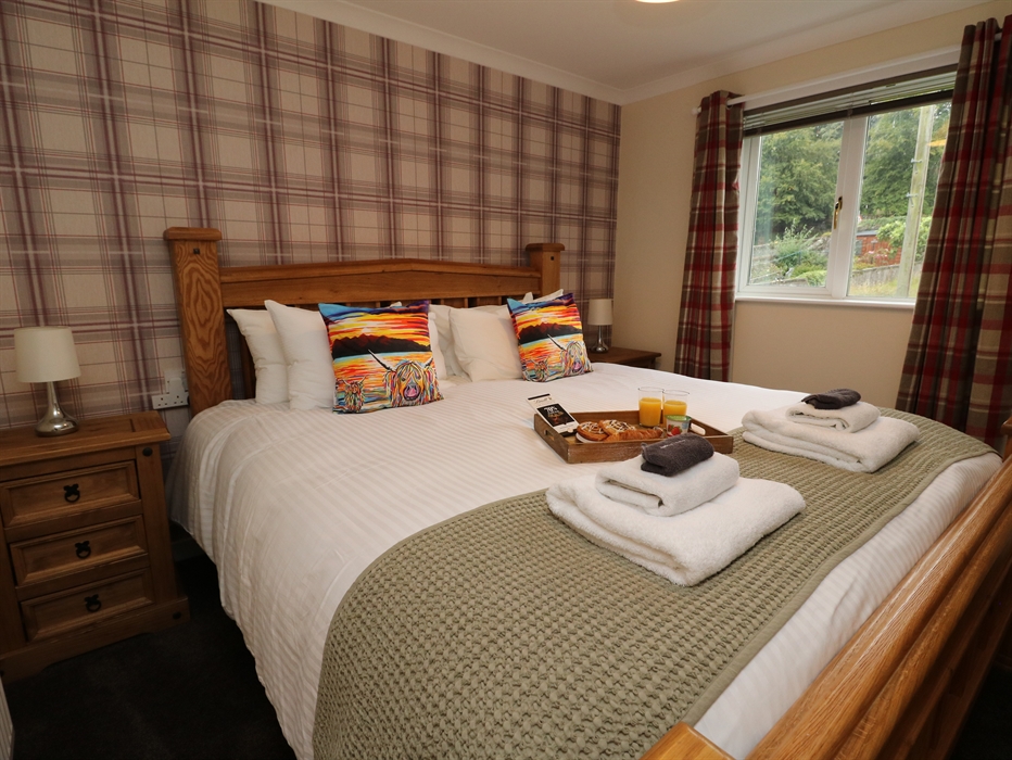 Room 3: First floor, king size bedroom with TV and en-suite shower, basin, heated towel rail and WC