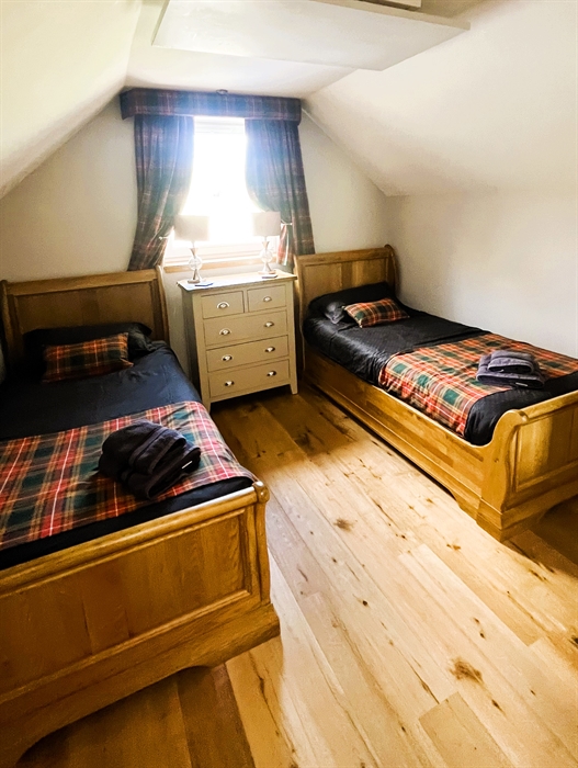 First Floor: King size bedroom with view to loch; Twin bedroom.