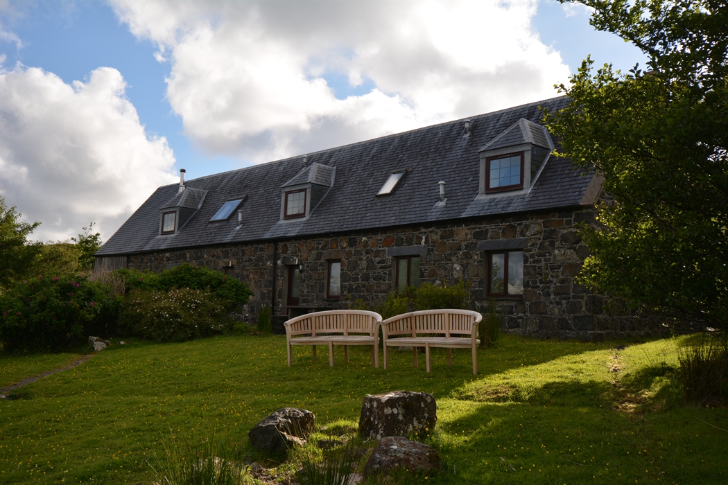 A 20-minute walk behind the house will takes you to the private shores of Loch Diubaig, from which you can see the Ascrib Islands. If you continue along the track, you’ll find shells, a ruined cottage, a secret cave, and occasionally see otters in the loch. Of course, we’re also a great base for exploring the Greshornish peninsulas, and the Cuillin hills are a 40-minute drive away. If you don’t fancy cooking one evening, you can amble to Greshornish House, a hotel, in the village.