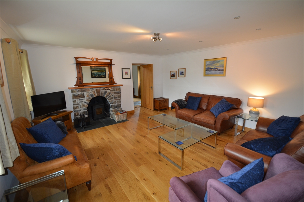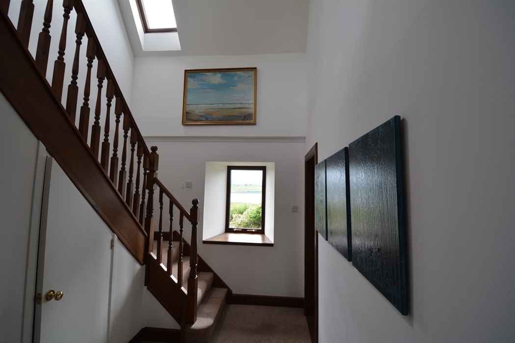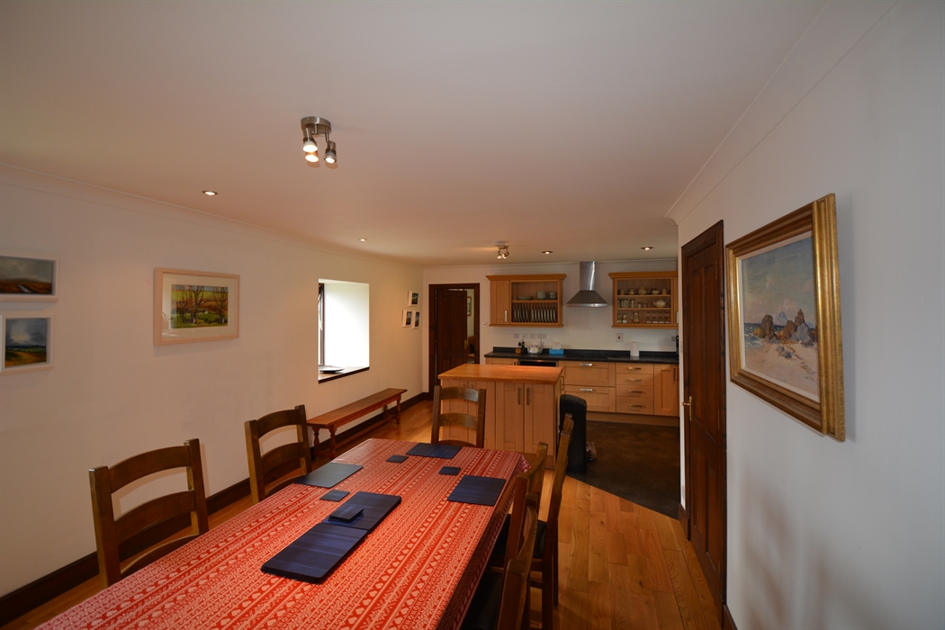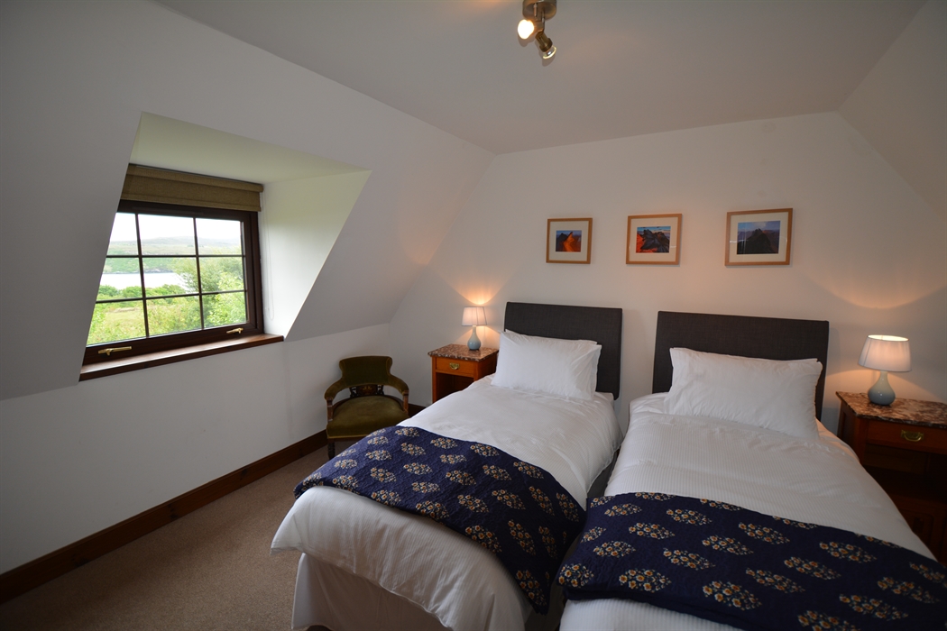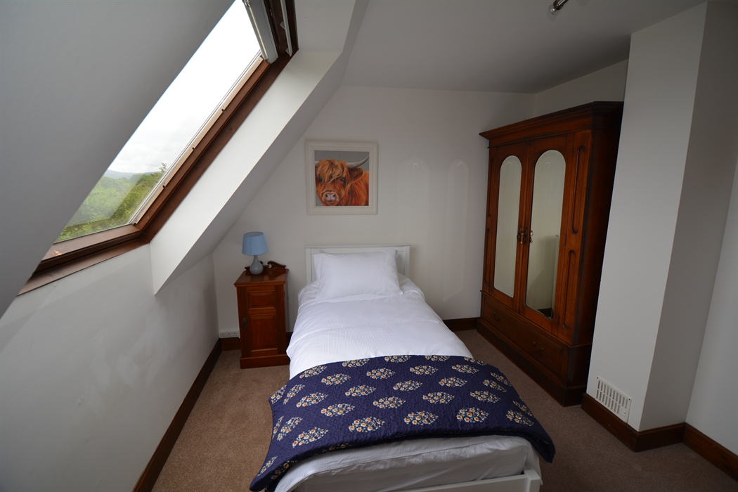 Inside, the house is comfortable, light, and spacious, yet cosy. You’ll enter the house via a hall extension, which gives you plenty of space to leave boots and outdoor clothing. We have kitted out the kitchen as you’d expect to find a home away from home, including local stoneware. There’s comfy seating, a multi-fuel stove, and TV in the living room. There are four generous bedrooms, which can accommodate up to 7 guests. The main bedroom suite is on the ground floor, and has a super-king bed plus en-suite bathroom with shower cubicle, bidet, and toilet. There’s also a separate toilet and utility downstairs. Upstairs, you’ll find the other three bedrooms – a king-size with an en-suite bathroom with over-bath shower and toilet; twin bedroom (two singles, that can be converted into a super-king, depending on your requirements); and a single bedroom. Every bedroom has views of the loch, and high coombed ceilings. There is also a separate shower room with toilet, as well as a study upstairs, should you need some peace and quiet. We have provided a range of DVDs, our favourite board games, books, and guides in the upstairs hall, to keep you busy whilst at home and help you plan where to explore! We have decorated the house with a wide range of twentieth century and contemporary Scottish – including local – art.