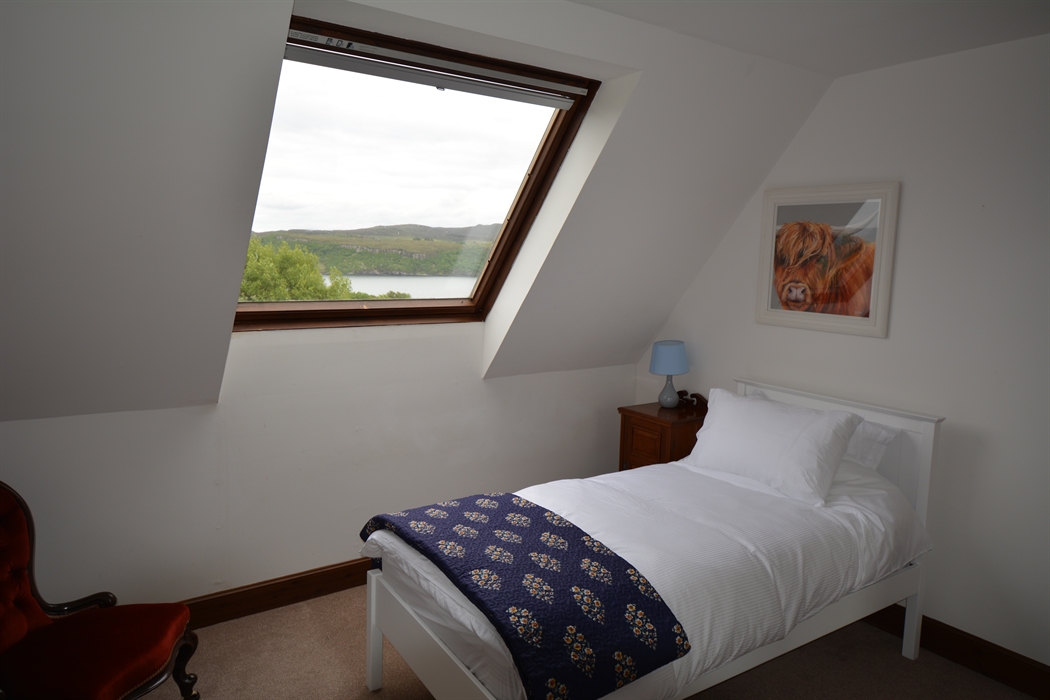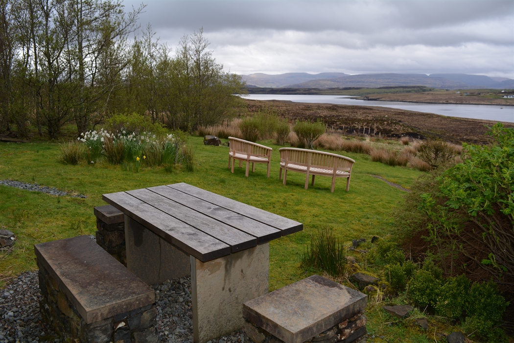 Outside, our enclosed 3-acre garden contains secluded lawns and seating, and is a haven for wildlife. There are exceptional views across Loch Greshornish, and to the Trotternish Ridge. Your children can watch rabbits from the kitchen window, swallows circle the house and young lambs frolic in the nearby fields. There is also private parking for 4 or 5 cars, depending on size.