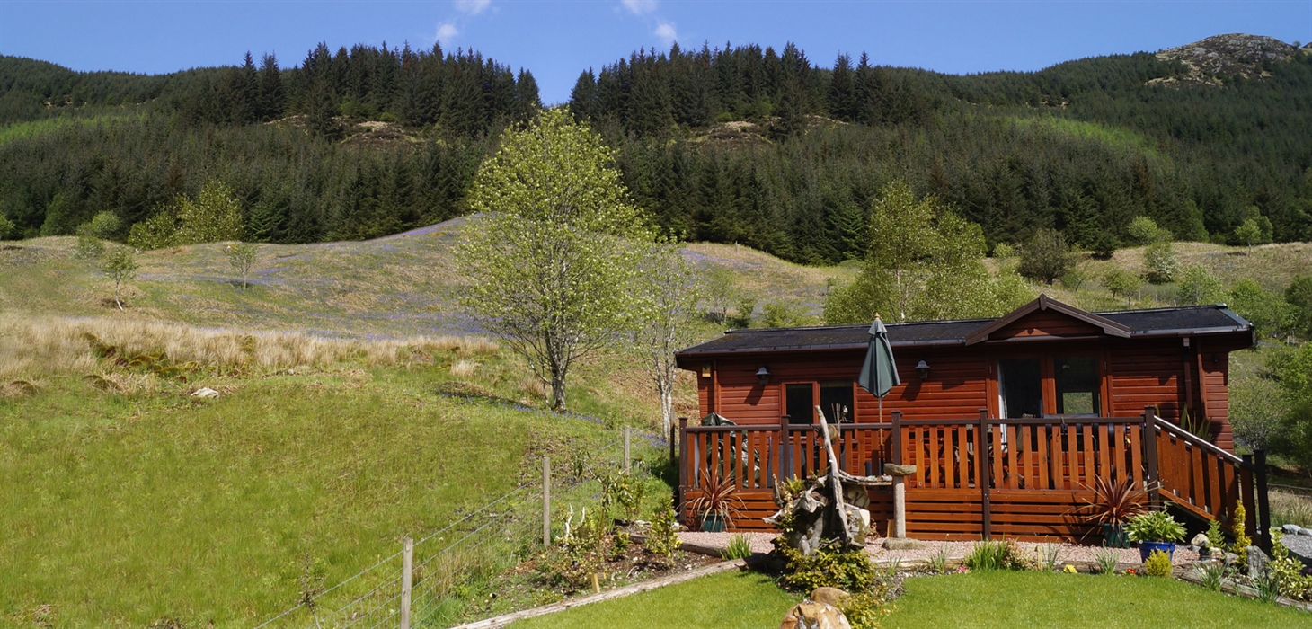 Foresters Lodge luxury log cabin on the west coast of Scotland with sauna and 24 jet couples spa bath in the stunning Glenhurich forest on the shores of world famous Loch Shiel known for its hallmark movies