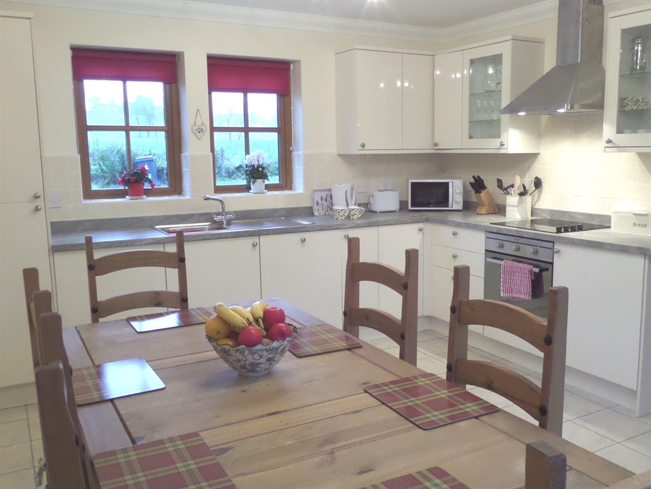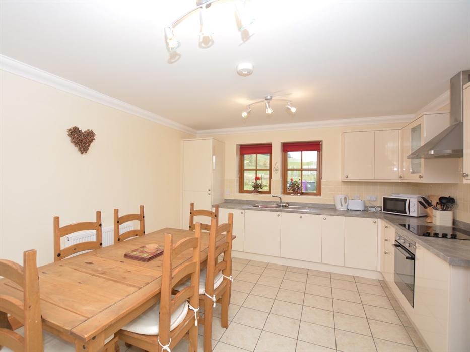 This wonderful spacious well-presented detached house enjoys magnificent mountain and countryside views. Perfect for families and groups of friends seeking a rural retreat in this Area of Outstanding Natural Beauty. Located at the edge of the Cairngorm National Park just on the border between the counties of Perthshire and Angus. This unspoiled corner of Scotland has an enchanting mix of rolling green hills rugged heather clad slopes wooded valleys rivers and waterfalls. Rich grass meadows are a haven for wildlife and you may spot deer red squirrels otters and barn owls. Fantastic outdoor activities are close at hand walking cycling golfing fishing on Kilry Burn a short walk and skiing with the Glenshee Ski Centre close by. The cities of Perth and Dundee are also within easy reach with their excellent leisure and shopping facilities. Leisure facilities: a nursery ski slope or sledging on the farm (only in the winter months weather depending). Games barn: shared with trampoline table tennis pool table table football dart board punch bag and a selection of children s ride on farm toys. The accommodation offers THREE bedrooms: 1 twin and 1 double. On the ground floor 1 king-size. Bathroom: with shower over bath and WC. Wet room: with shower and WC on the ground floor. Lounge: with woodburner (logs included) and TV/DVD. Kitchen/diner: well-equipped with electric oven and hob microwave fridge/freezer dishwasher and patio doors leading out to garden. Utility room: with washer/dryer and door leading out to garden. Outside: enclosed garden with BBQ and seating area. Amenities: ample off-road parking. Bed linen towels electric central heating and Wi-Fi included. Regret no smoking. 2 dogs welcome. Additional info: electric vehicle charge point on the farm. Location: shops pubs and restaurants 4 miles. Arrival: 4pm. Any property identified with increased accessibility may have different levels of provision it is therefore advisable you contact us before you book to ensure the property meets your specific needs and requirements.