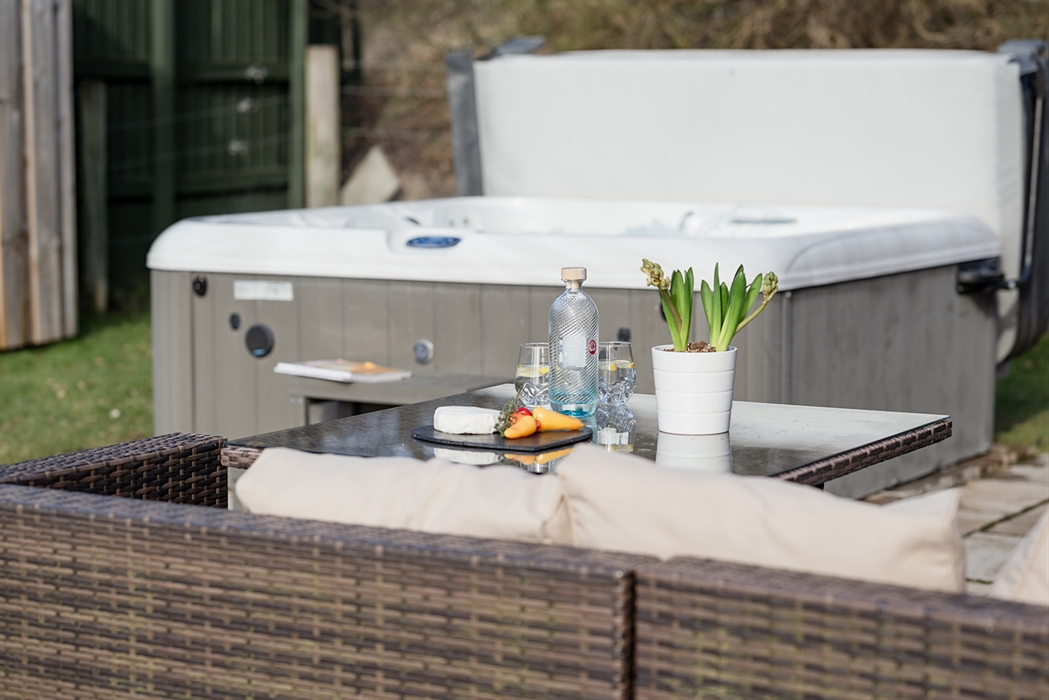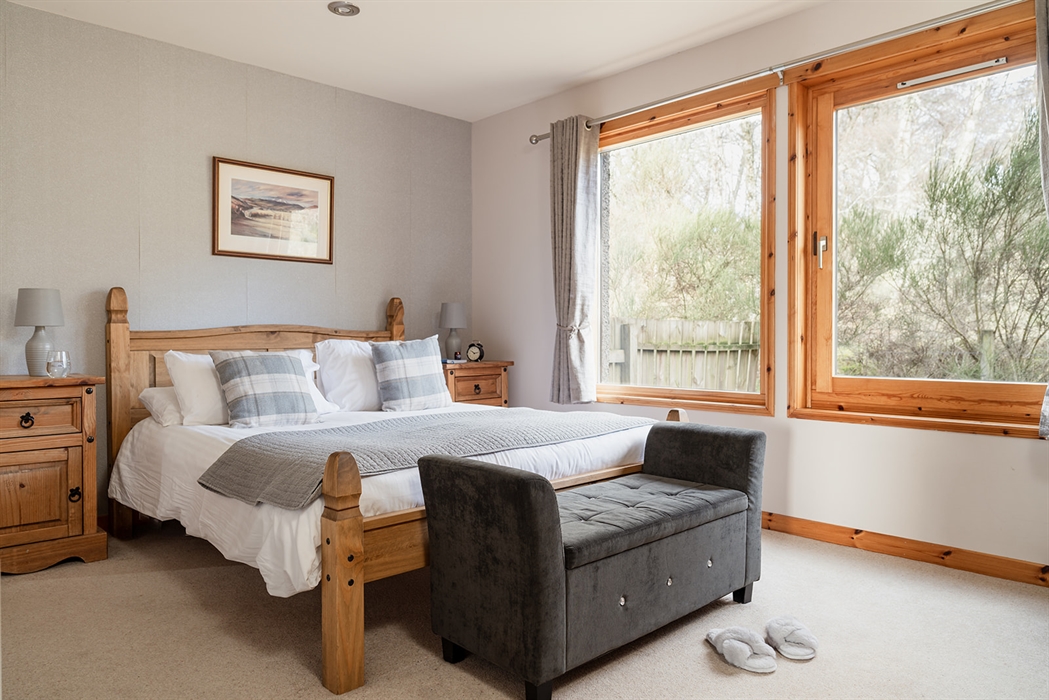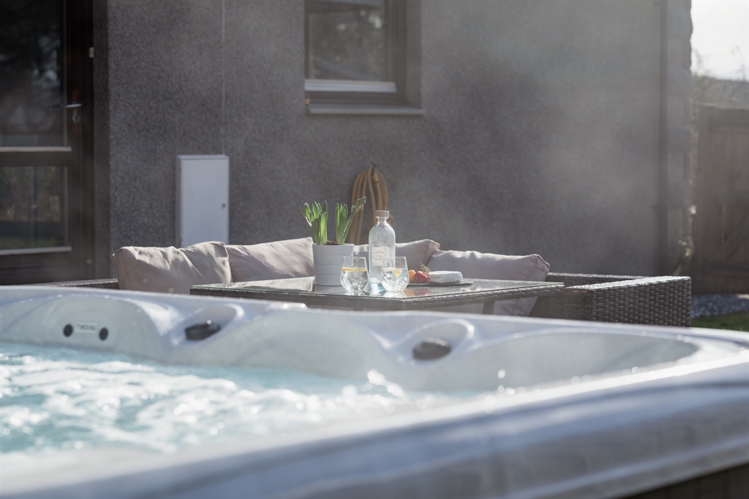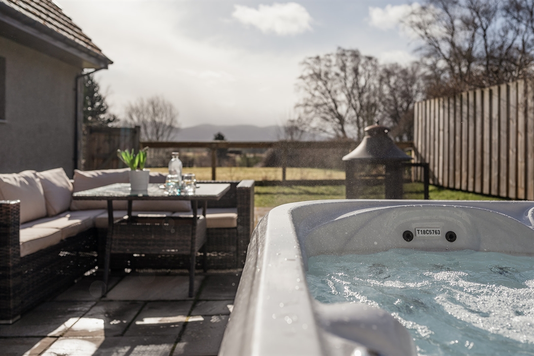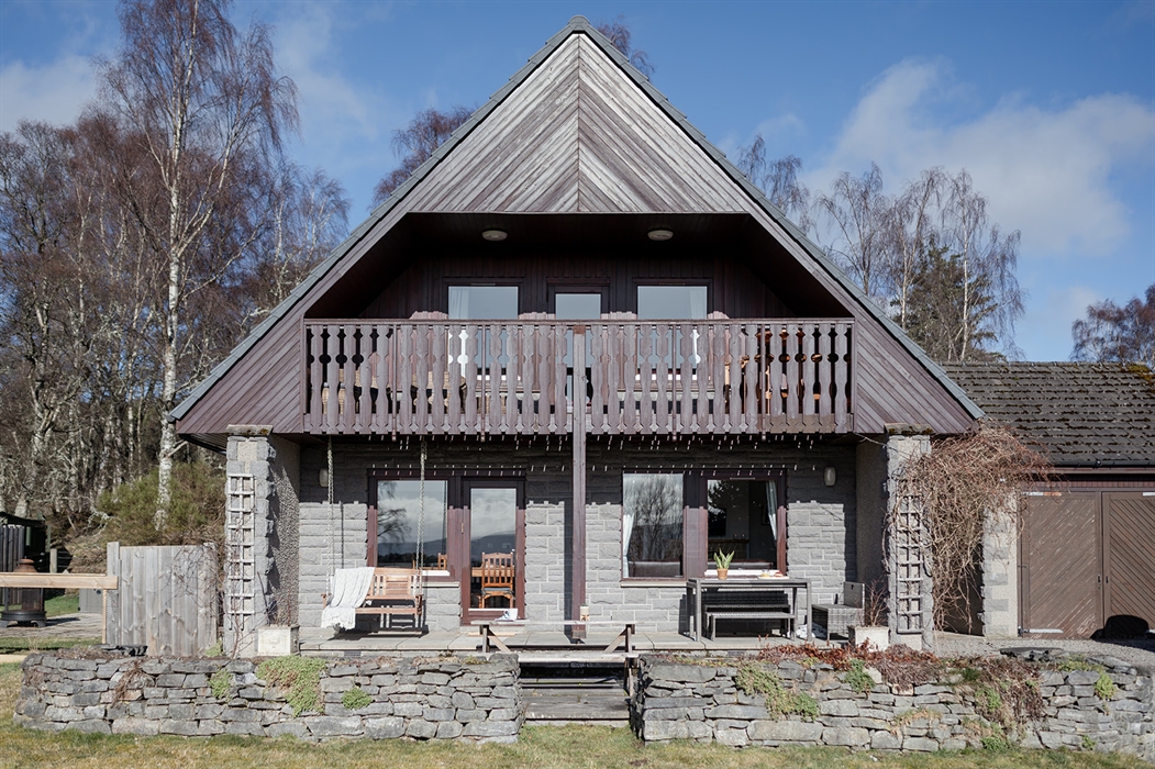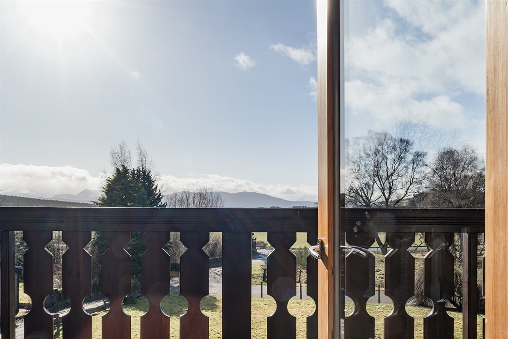 This Alpine-style lodge, featuring four bedrooms and a hot tub, comfortably accommodates nine guests, offering a beautiful retreat with a fabulous view.