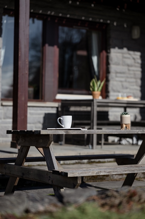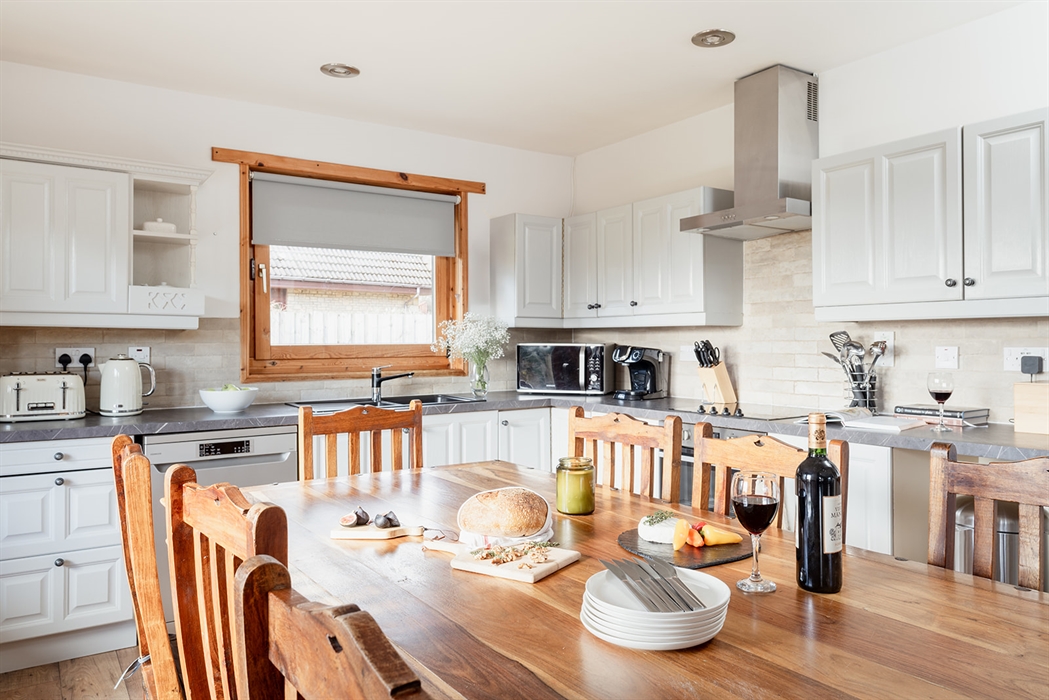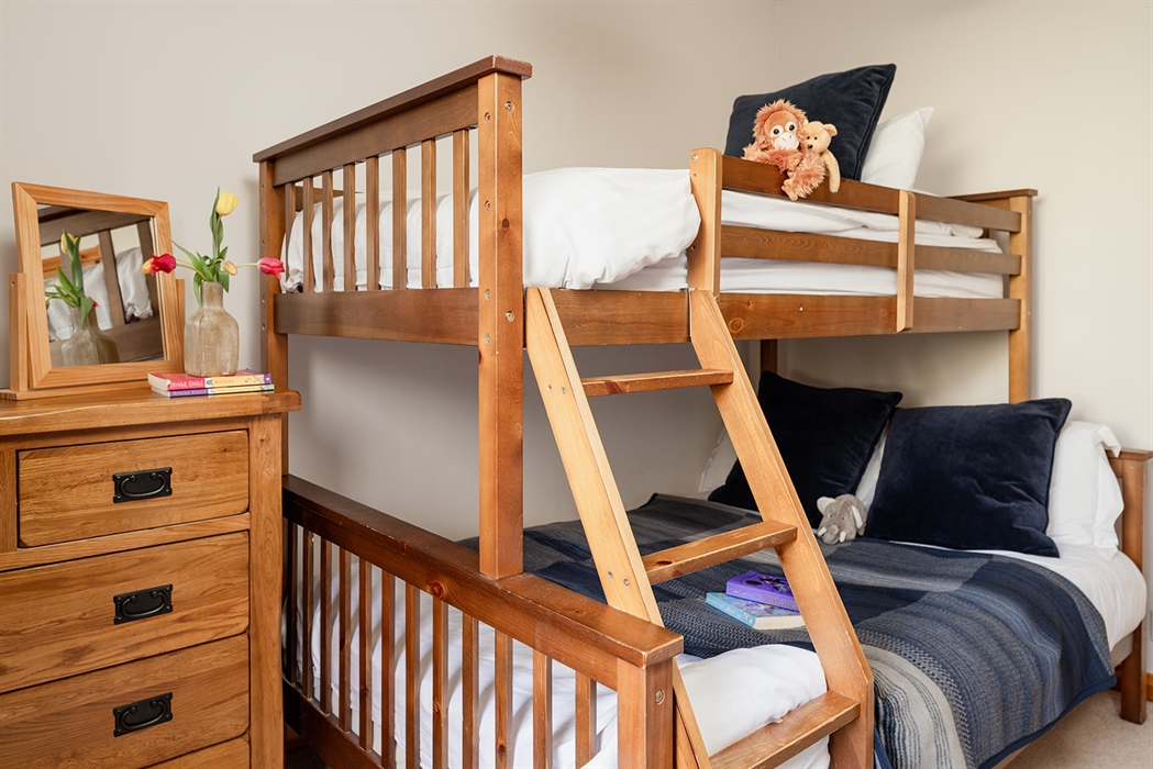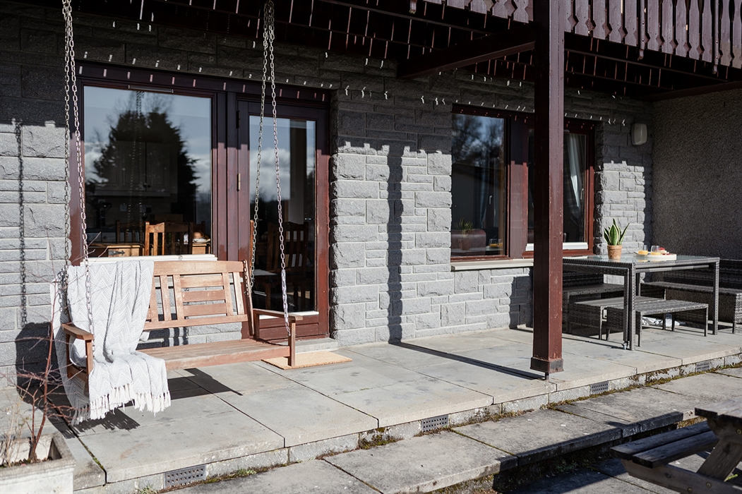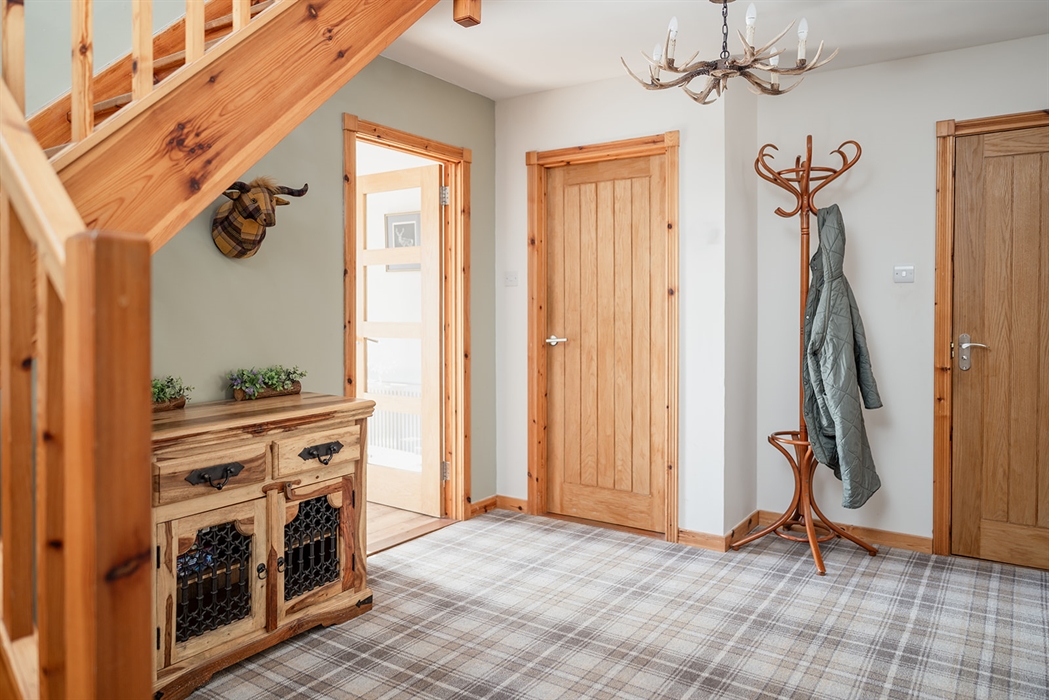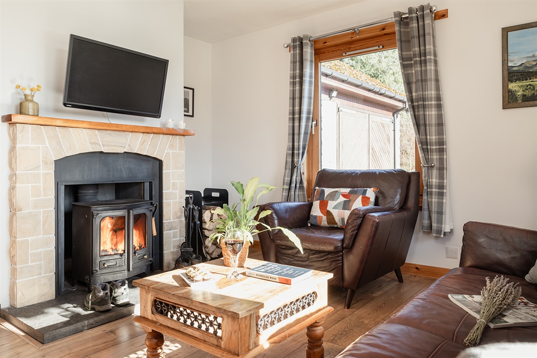 This Alpine-style lodge, featuring four bedrooms and a hot tub, comfortably accommodates nine guests, offering a beautiful retreat with a fabulous view.