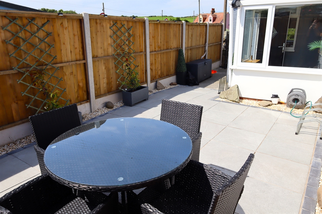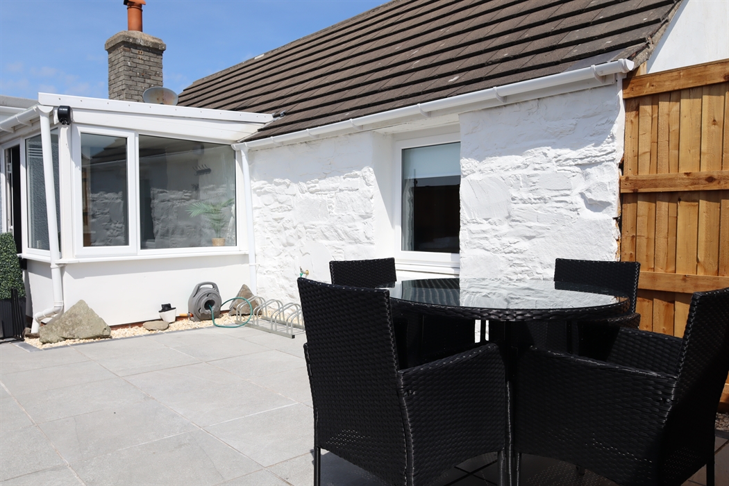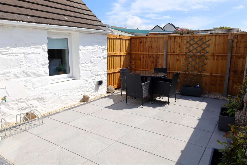 The enclosed courtyard garden at Tigh Samhradh is a perfect sun trap, furnished with patio furniture and a bike lock-up station for security.