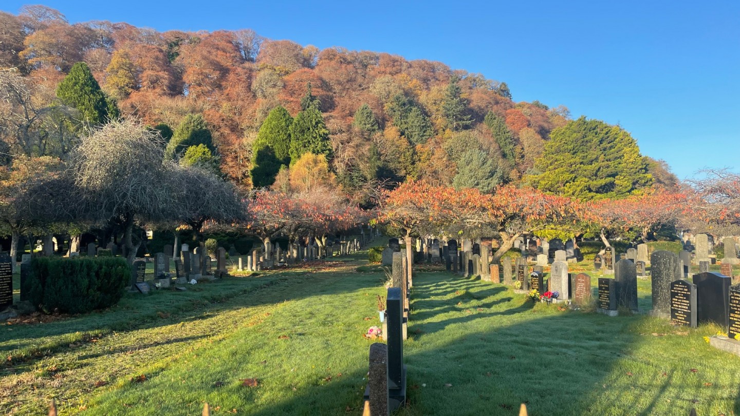 Leaves from: Tomnahurich Cemetery, 118 Glenurquhart Road, Main entrance, and we finish at the Old High Church, in Inverness.
