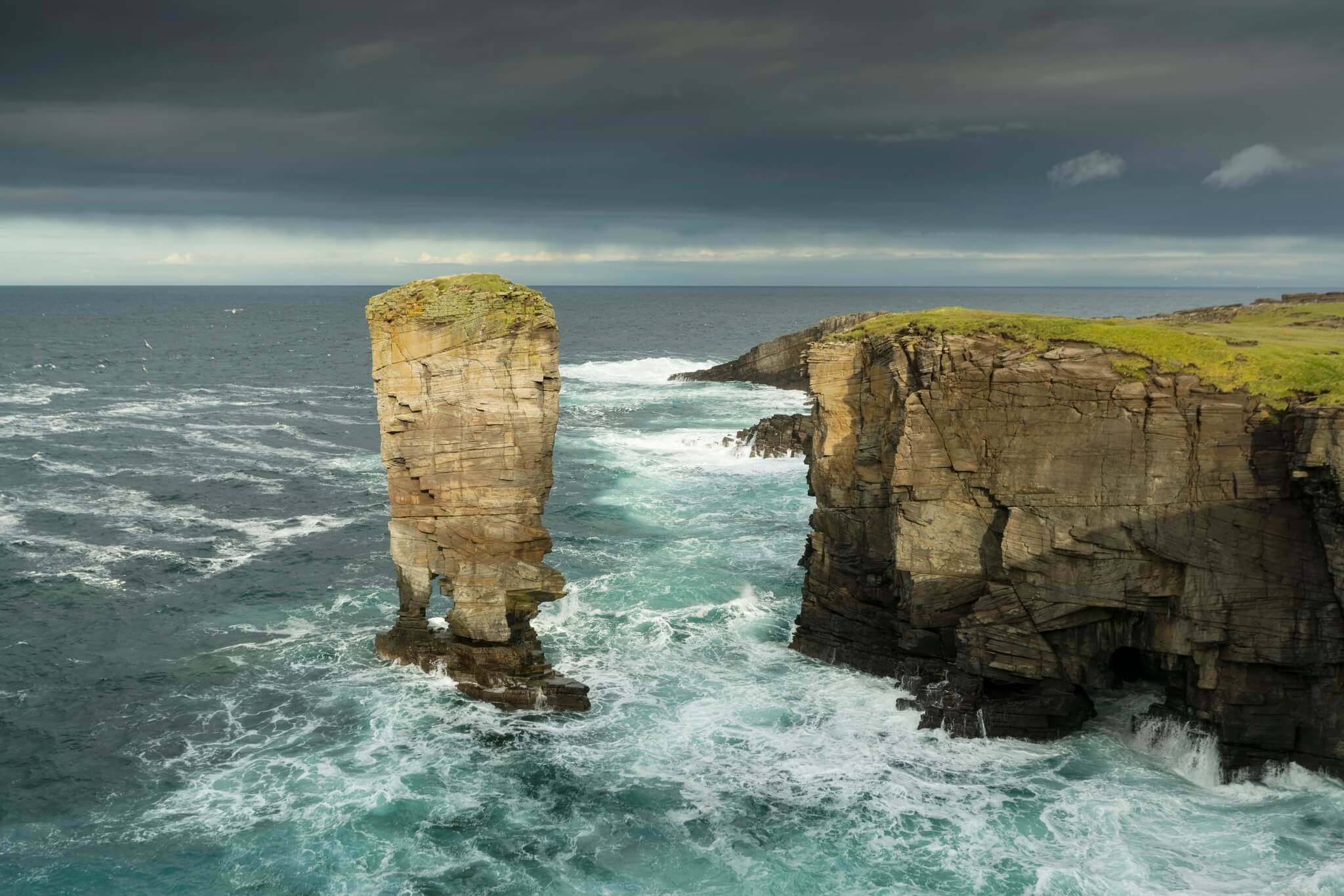 You can't help but admire the beauty around the Yesnaby Castle sea stacks. Sitting off the west coast of Orkney, this impressive rock formation is a great place to see various sea birds including the oyster catcher.
