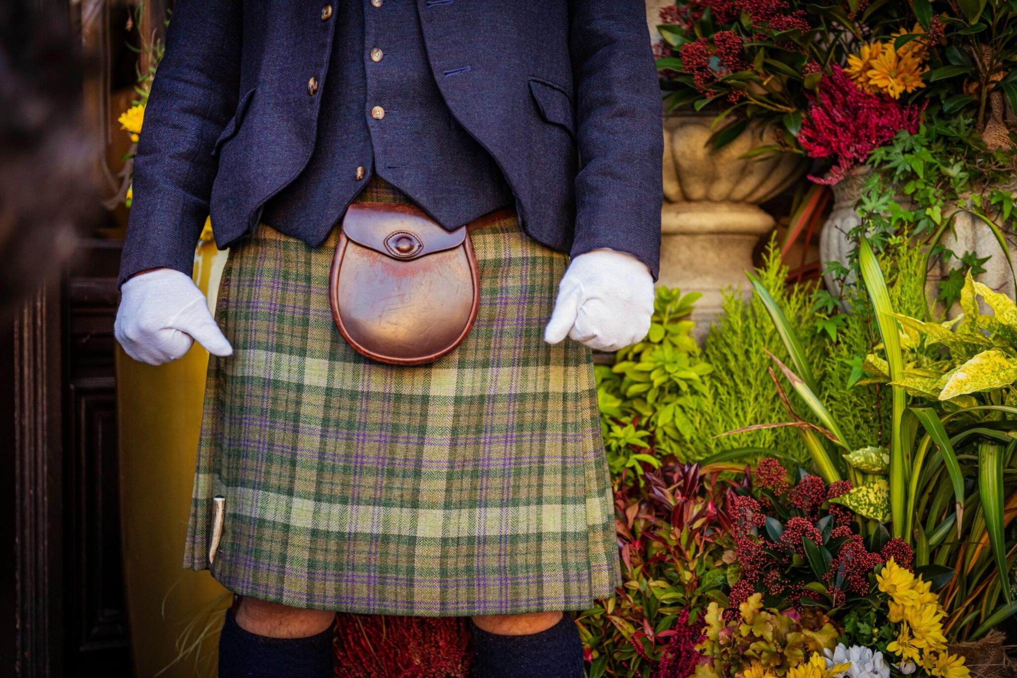 The kilted doorman outside the entrance of the Balmoral Hotel.