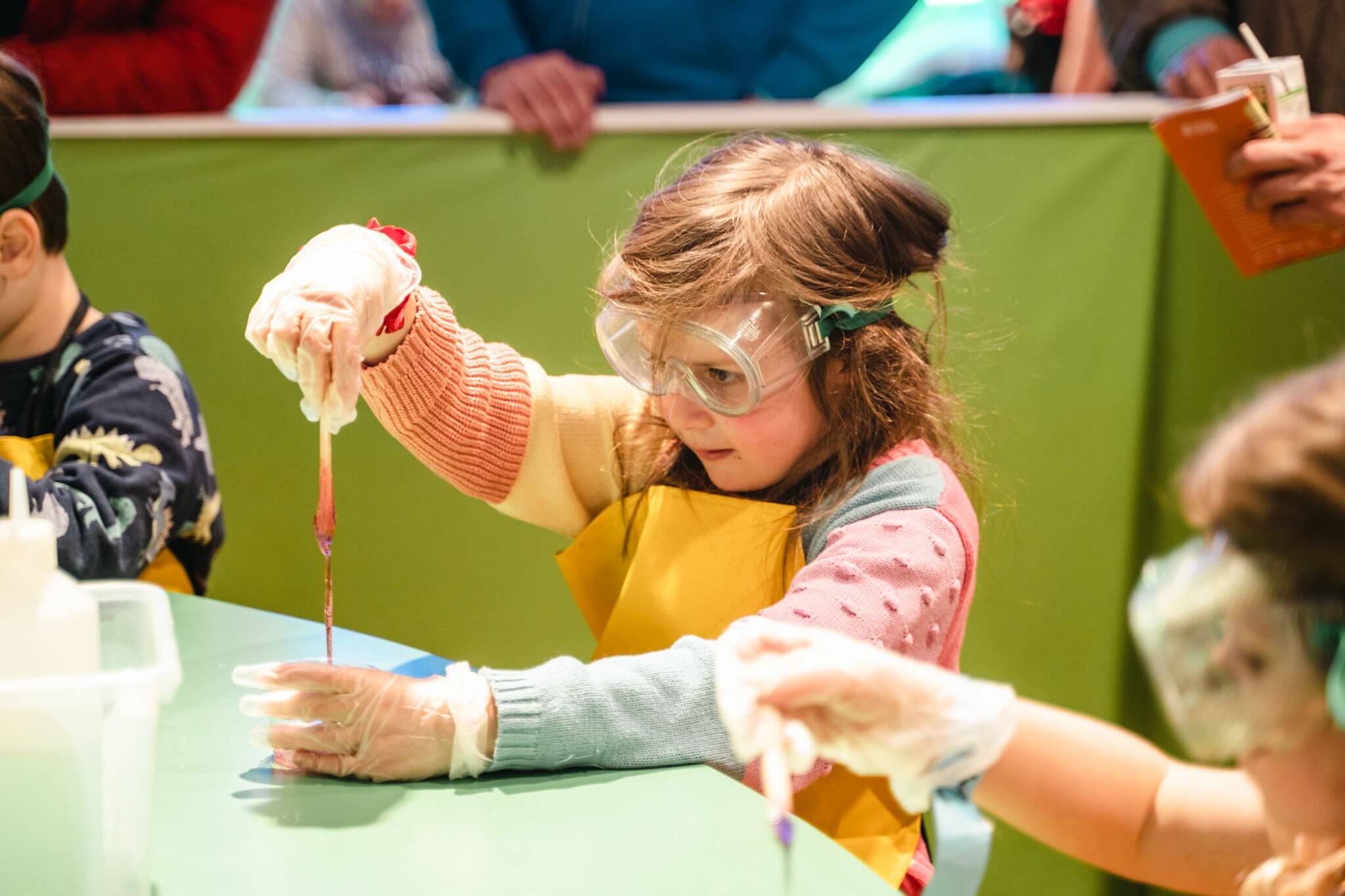 A young girl taking part in a fun experiment at Edinburgh Science Festival