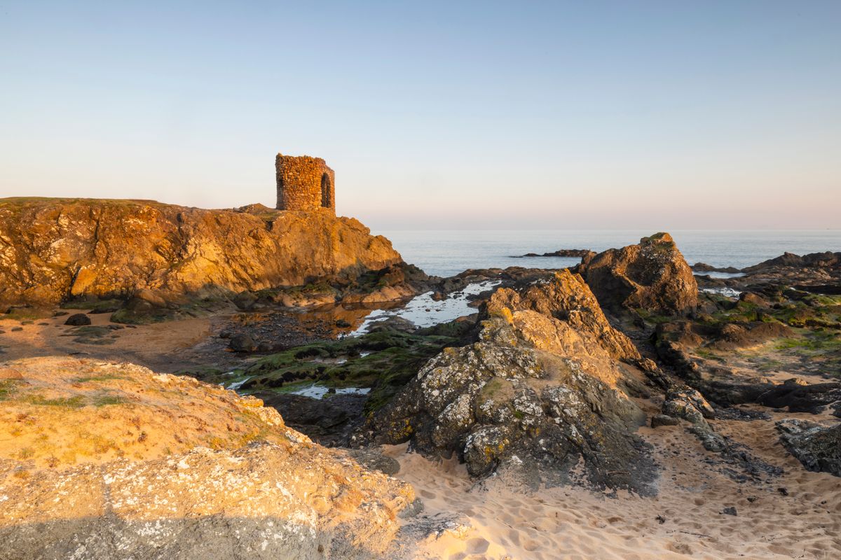 Ruby Bay, a section of coastline along the East Neuk, is home to a building with a very interesting story. Along the cliffs you will find Lady’s Tower, a structure built by Lady Janet Anstruther of Elie House. It was Lady Anstruther’s summer house as she loved to bathe in the sea – but also loved her privacy. Whenever she went to bathe, she sent a man through the streets of Elie ringing a bell to tell people to stay away! Today, anyone can explore the remains of the tower and enjoy its amazing views.