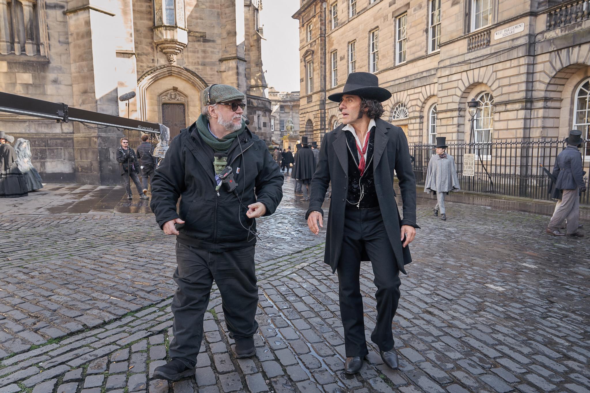 Guillermo del Toro and Oscar Isaac on the set of Frankenstein in Edinburgh