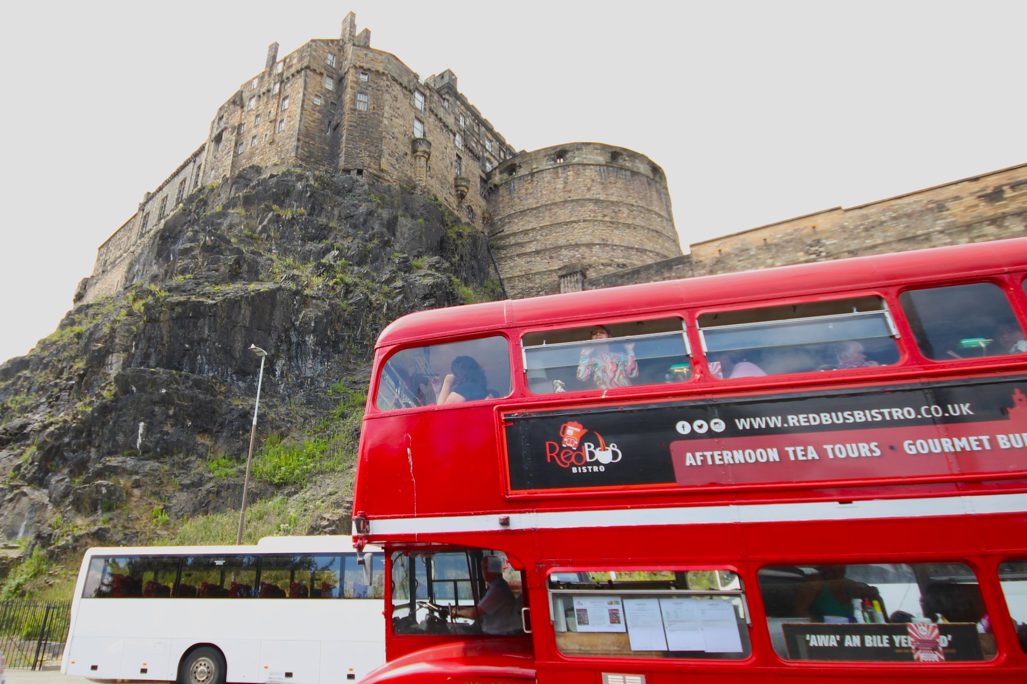 Red Bus Bistro with Edinburgh Castle in the back